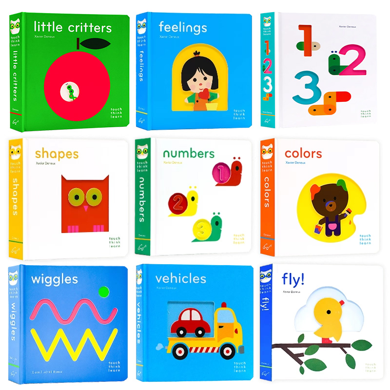 纸板书 艺术启蒙感知能力培养 绘本 儿童幼儿英语启蒙 Deneux 名家Xavier Learn Think Touch 英文原版 小手摸摸全知道9册组套
