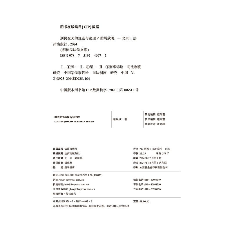 规范与法理 梁展欣 明德民法学文库 正版 法律出版 刑民交叉 刑民交叉基本法理刑民边界相互衔接相关规范 社9787519749972 2024新书