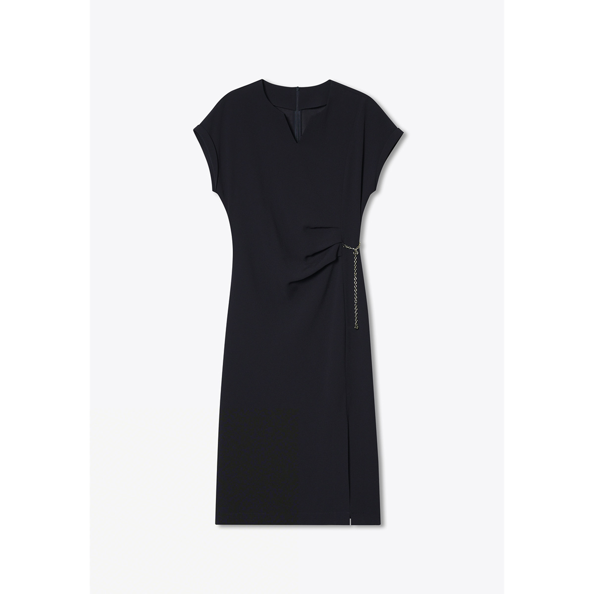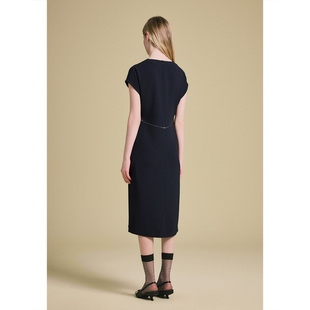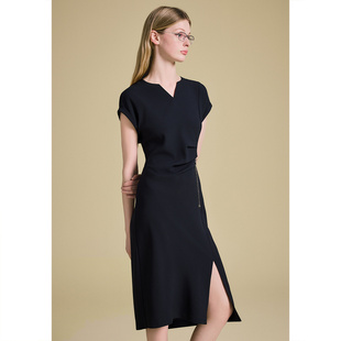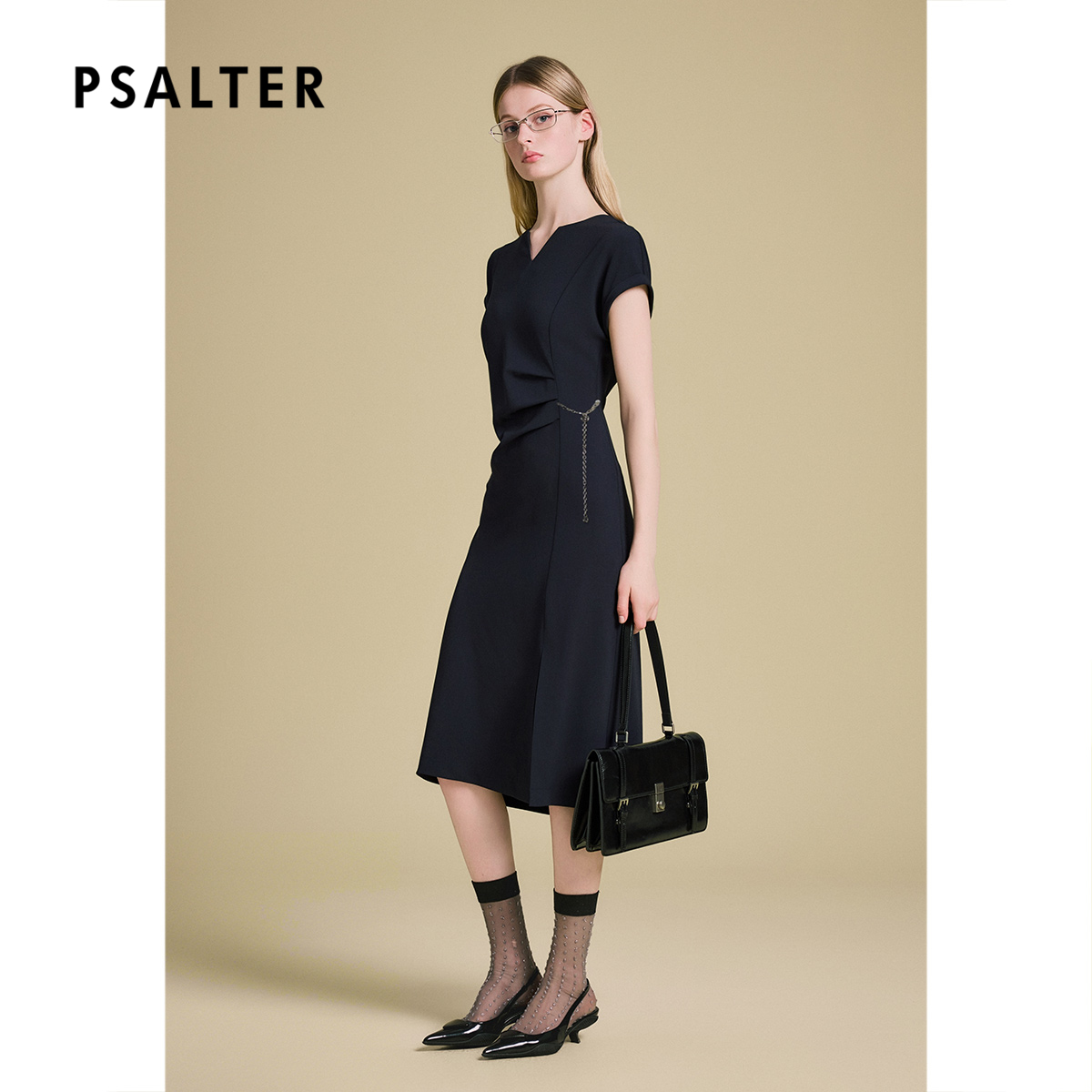 新款 连衣裙2025夏季 醋酸修身 PSALTER诗篇气质V领褶皱开衩落肩袖