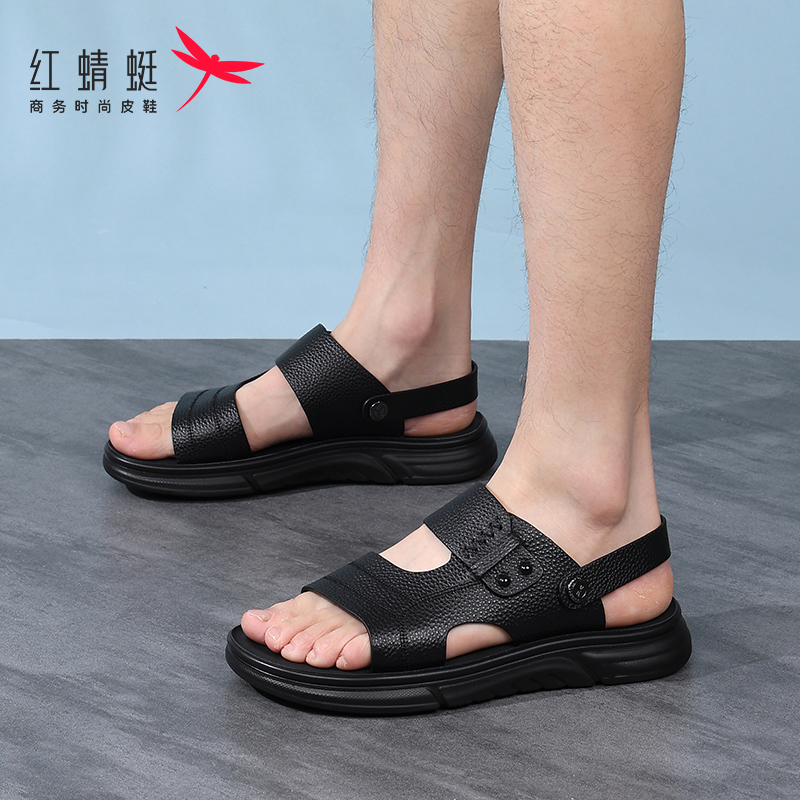 软底防滑外穿两用凉拖鞋 老人头凉鞋 休闲沙滩鞋 真皮男士 男2025夏季