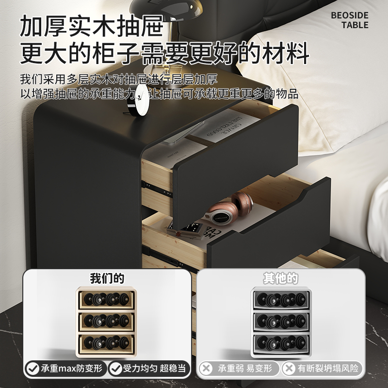 奶油风实木床头柜家用卧室小型床边柜子2025爆款 简约现代收纳柜
