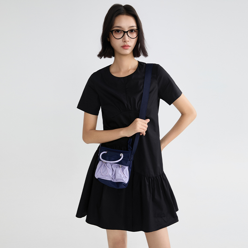 SNIDEL2025秋冬新品 气质圆领薄纱拼接收腰A字连衣裙SWFO254083