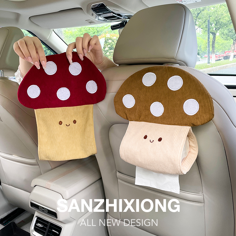 可爱蘑菇汽车纸巾包创意车载纸巾包汽车座椅背挂式 抽纸袋车家两用