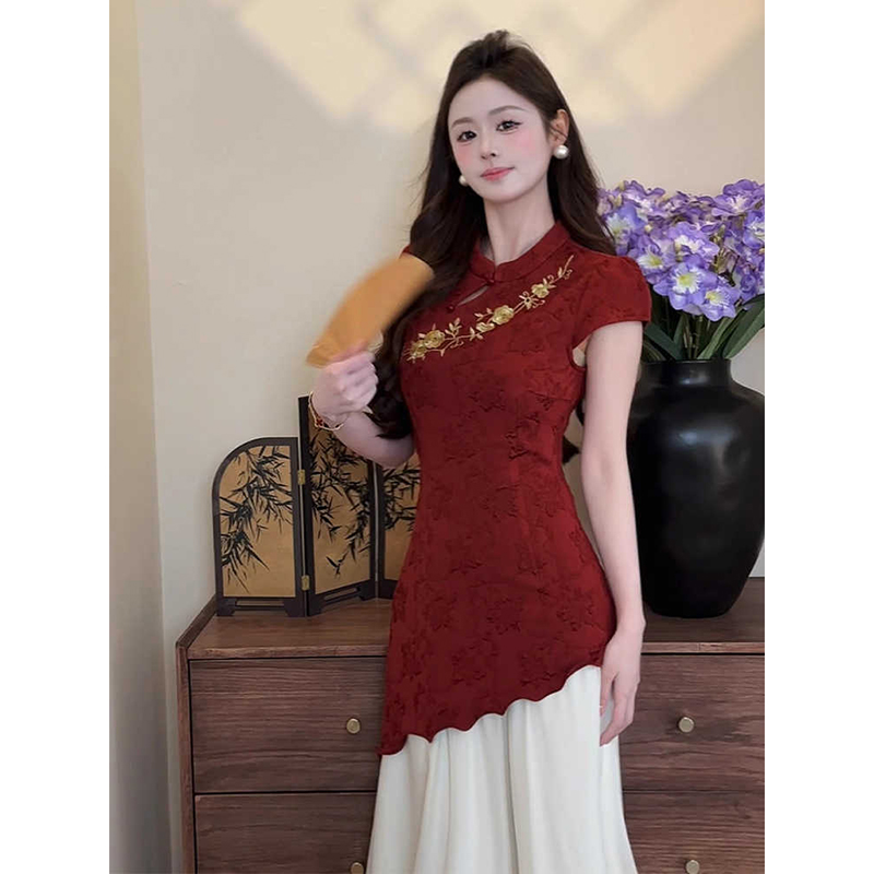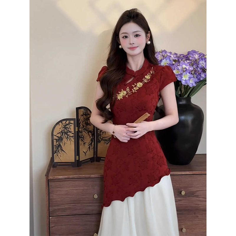 新中式 2025夏新品 国风刺绣拼接假两件旗袍连衣裙日常可穿 羲和