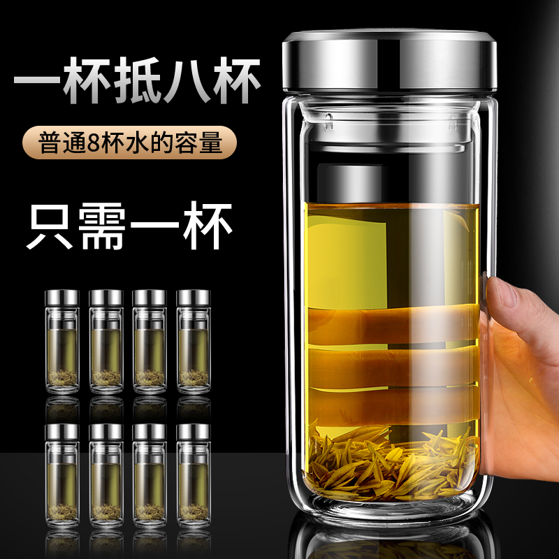新款 智能显温大容量双层玻璃杯耐热防爆泡茶水杯子男女士家用办公