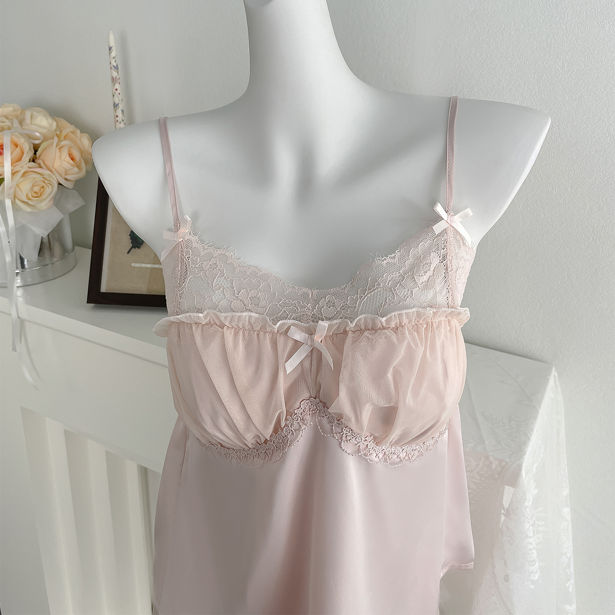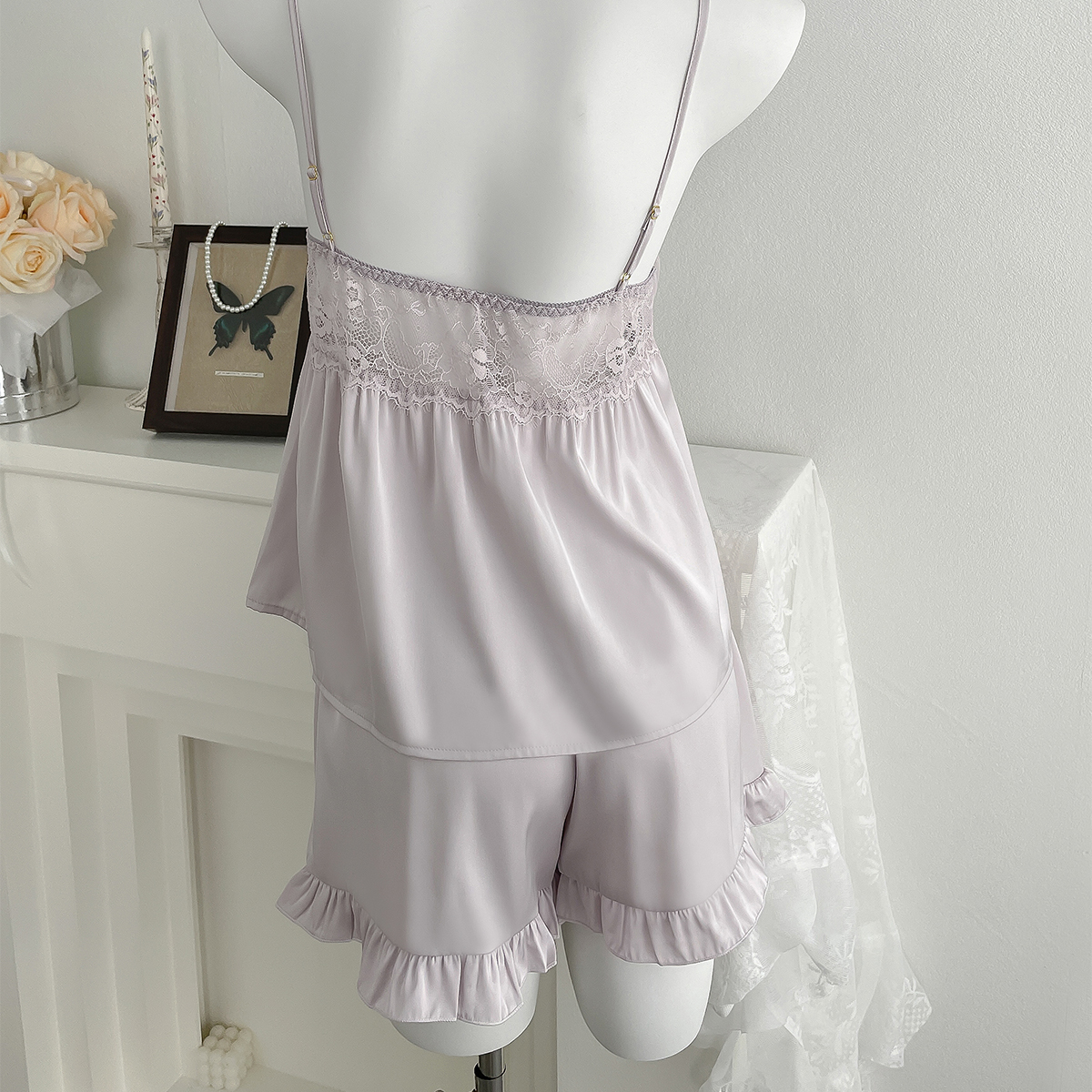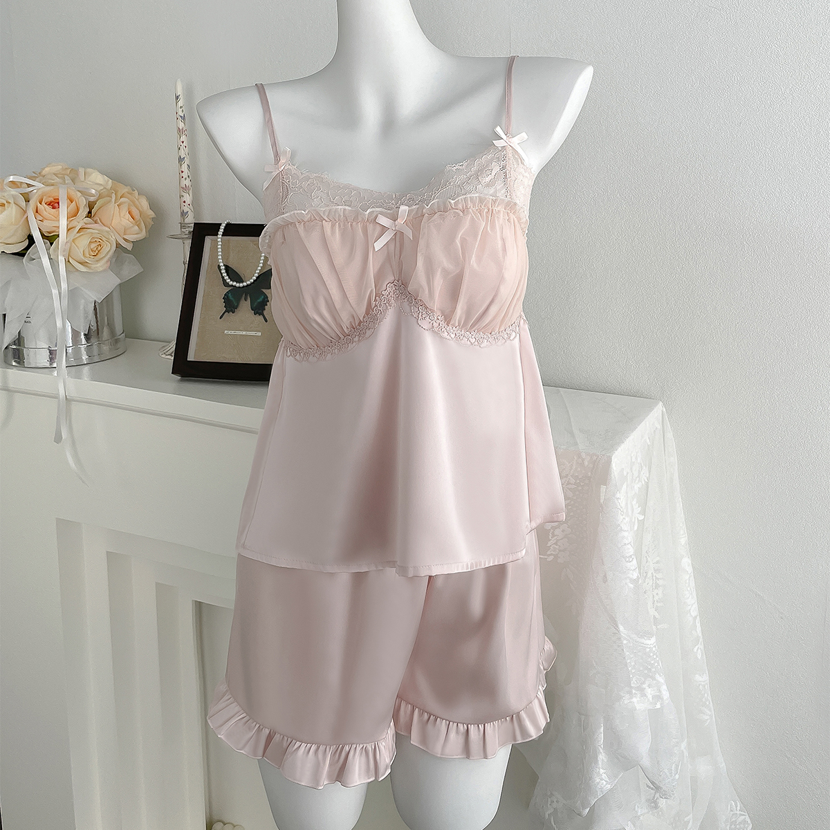 少女清新纯欲风家居服套装 带胸垫缎面睡衣甜美风吊带短裤 新款 夏季