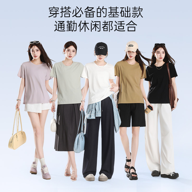 体恤修身 夏季 打底 蚕丝t恤女2025新款 五只白鹅莱赛尔天丝圆领短袖
