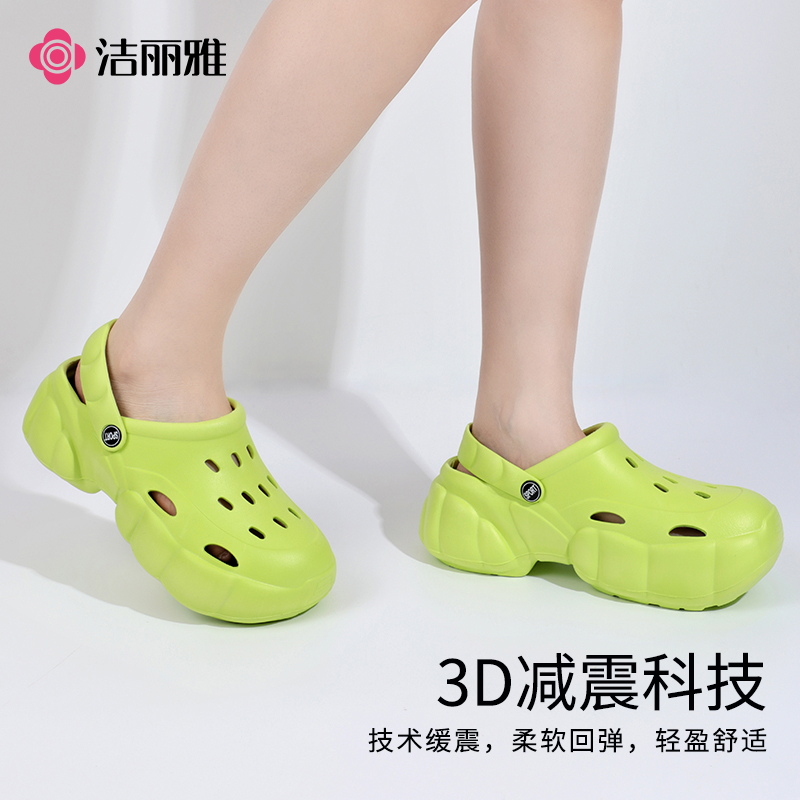 男鞋 夏季 沙滩鞋 洁丽雅洞洞鞋 情侣潮拖鞋 户外包头拖鞋 外穿凉鞋 女鞋