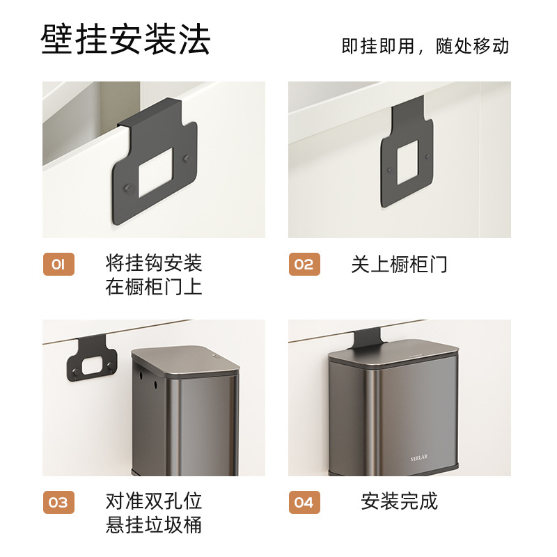 不锈钢双层壁挂垃圾桶 卫生收纳桶 厨房卫生间免弯腰挂式