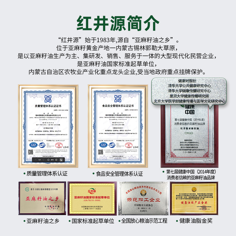 红井源正宗内蒙初榨亚麻籽油2.456L食用油官方旗舰店胡麻油家用