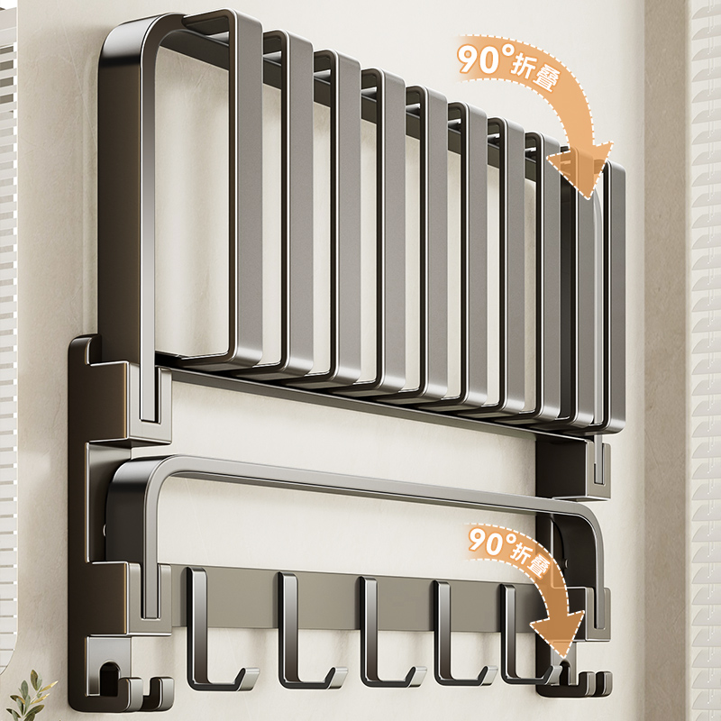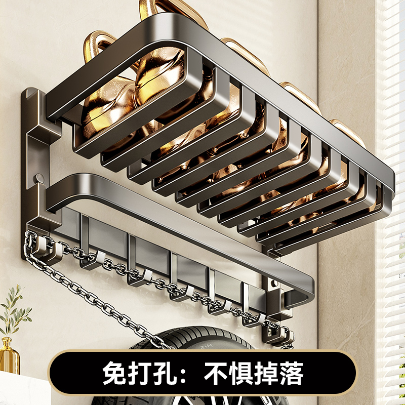 网篮毛巾架免打孔壁挂式 浴室卫生间置物架多功能可折叠收纳挂架