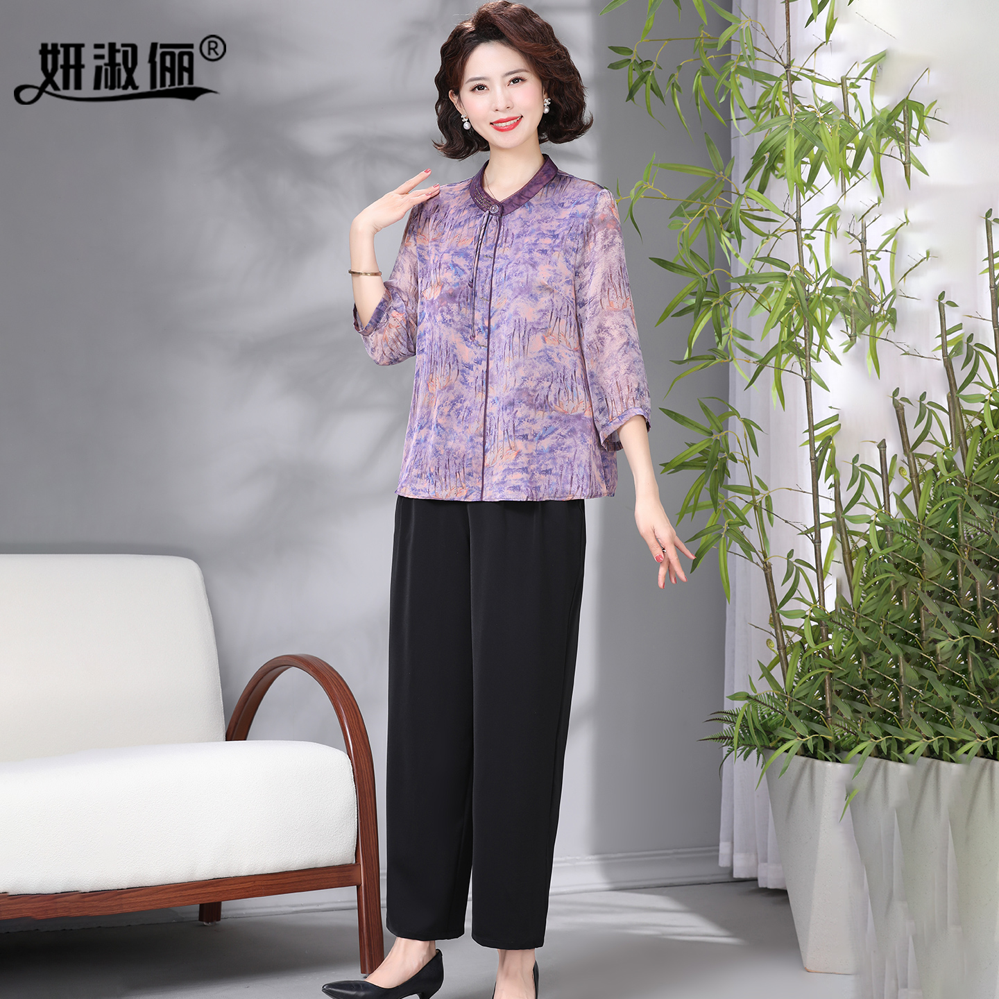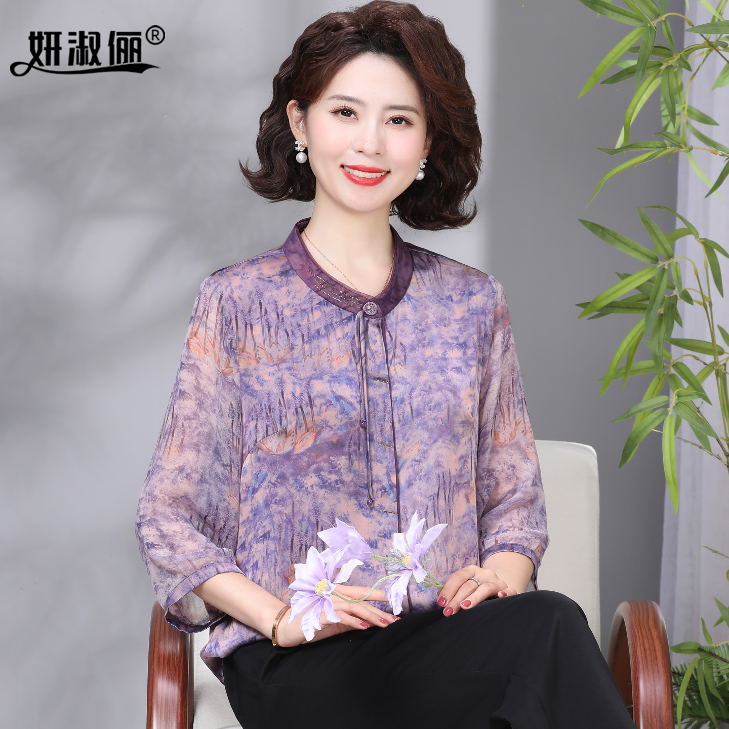 贵夫人品牌上衣国风套装 中老年人妈妈夏新中式 2025新款 七分袖 小衫