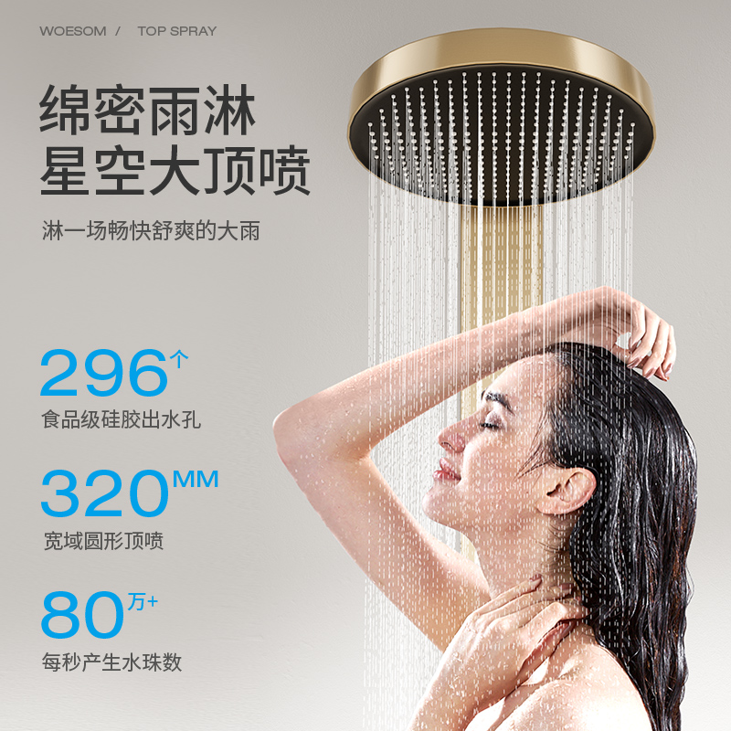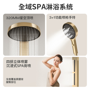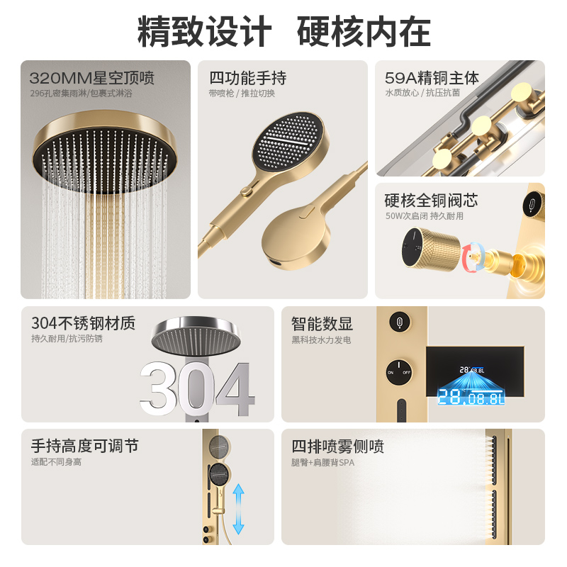 奥享全铜极简淋浴花洒套装 家用数显浴室增压顶喷淋浴屏器沐浴卫浴
