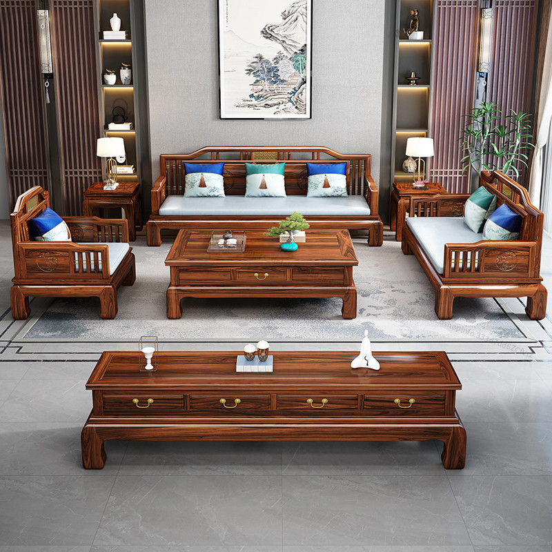 乌金木全实木沙发组合古典中国风现代家用客厅新中式 家具冬夏两用