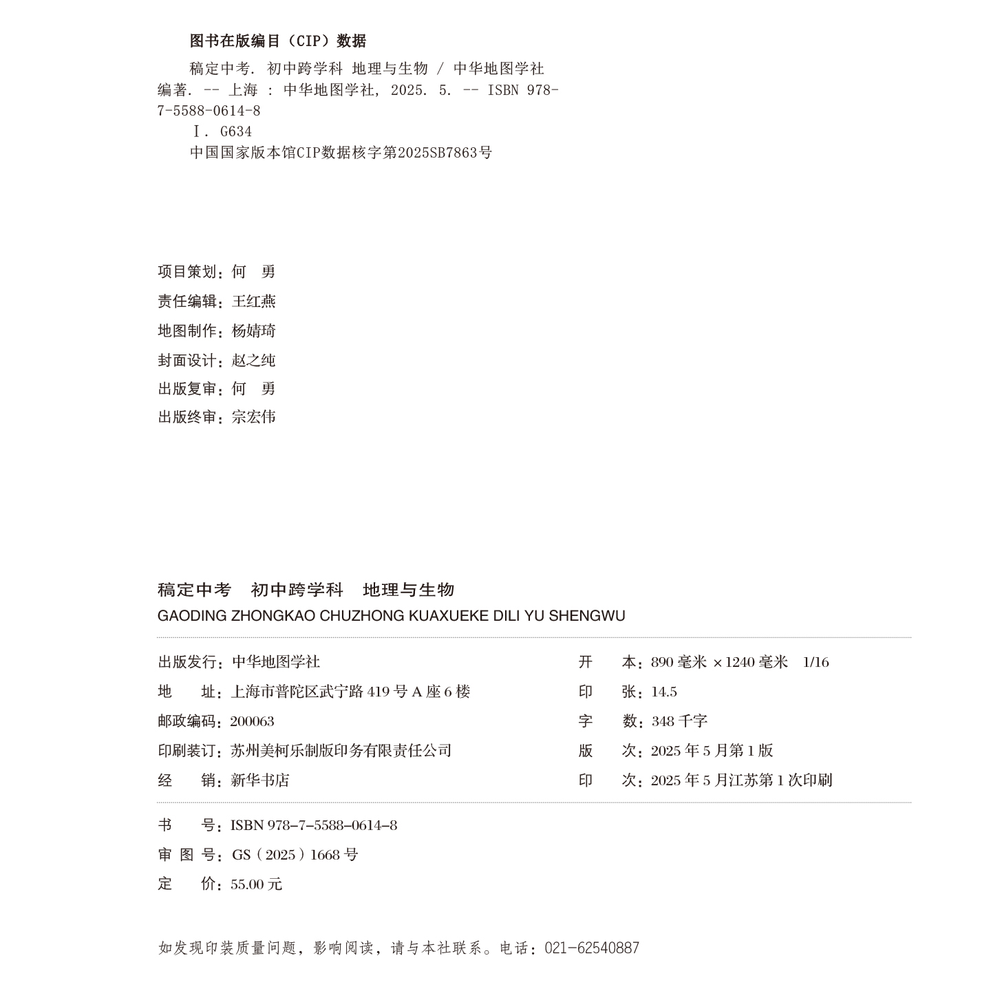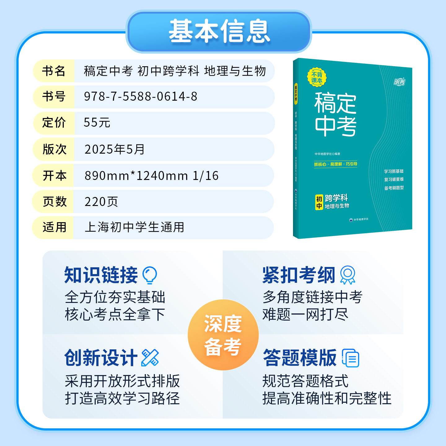跨学科版 初中复习辅导书中华地图学社 稿定中考 初中初一初二初三通用 25新版 块冲刺 上海中考 地理与生物 初中跨学科 上海直发
