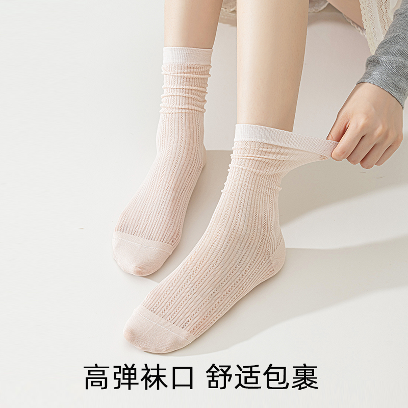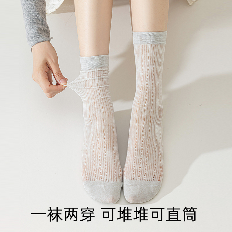 桑蚕丝袜子女夏薄款 吸汗透气冰冰袜中筒堆堆袜抑菌防臭月子长筒袜