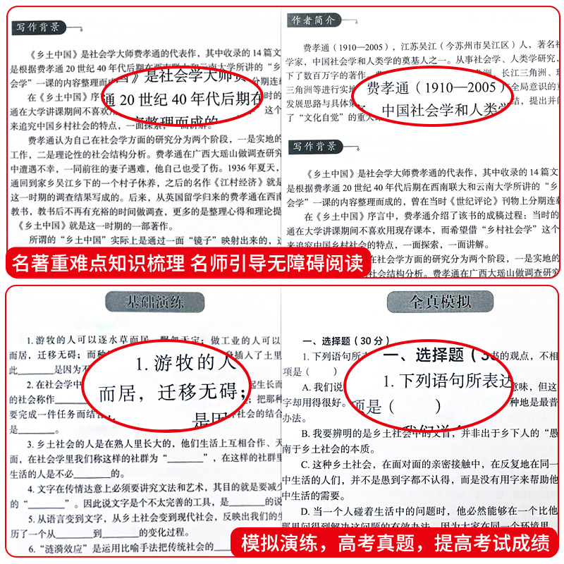 无删减原版 整本书阅读与检测原著红楼梦正版 完整文学名著高一高中生课外阅读书籍传统文 同步费孝通2025新版 乡土中国高中必读人教版