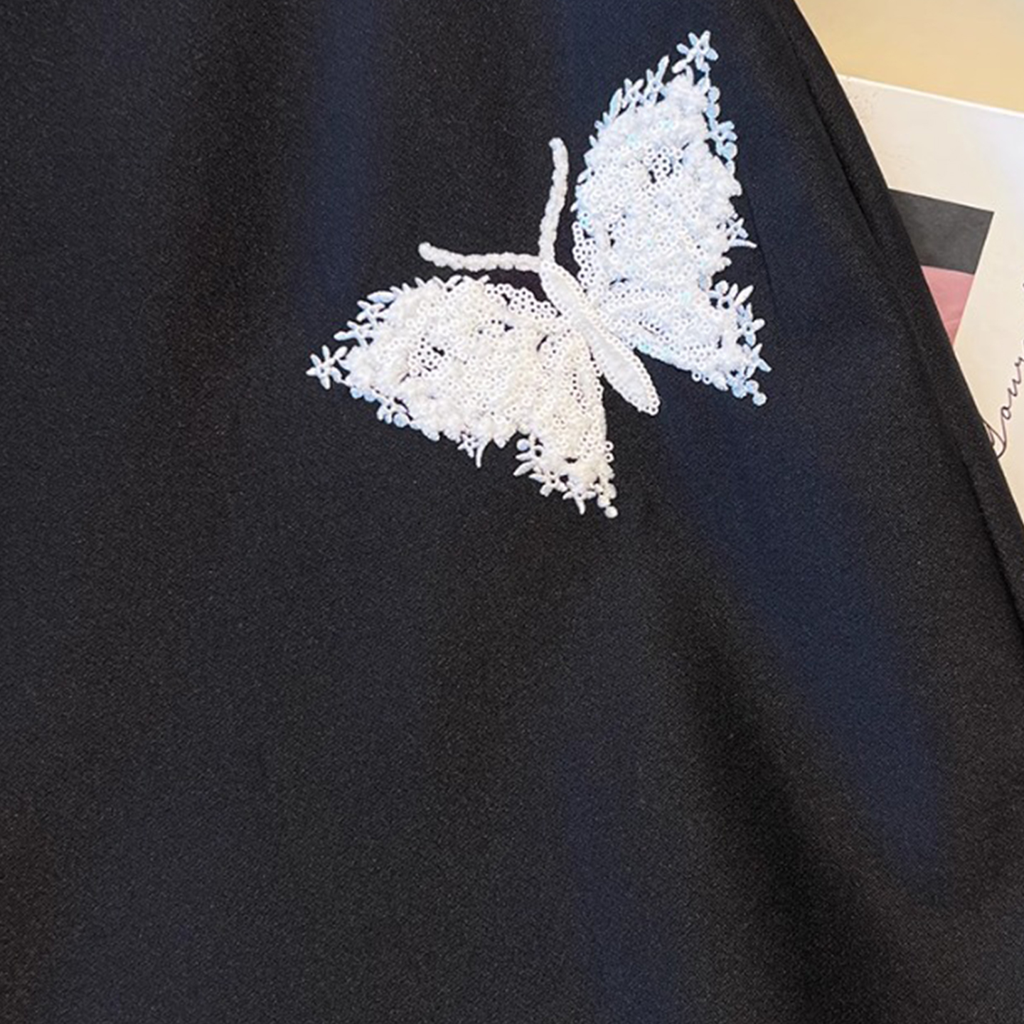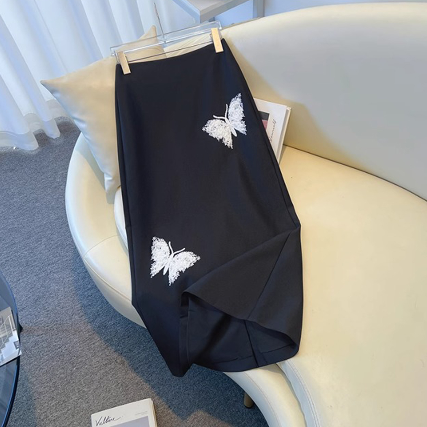 胖mm高腰显瘦开叉包臀A字裙 大码 高级感蝴蝶刺绣西装 半身裙女夏季