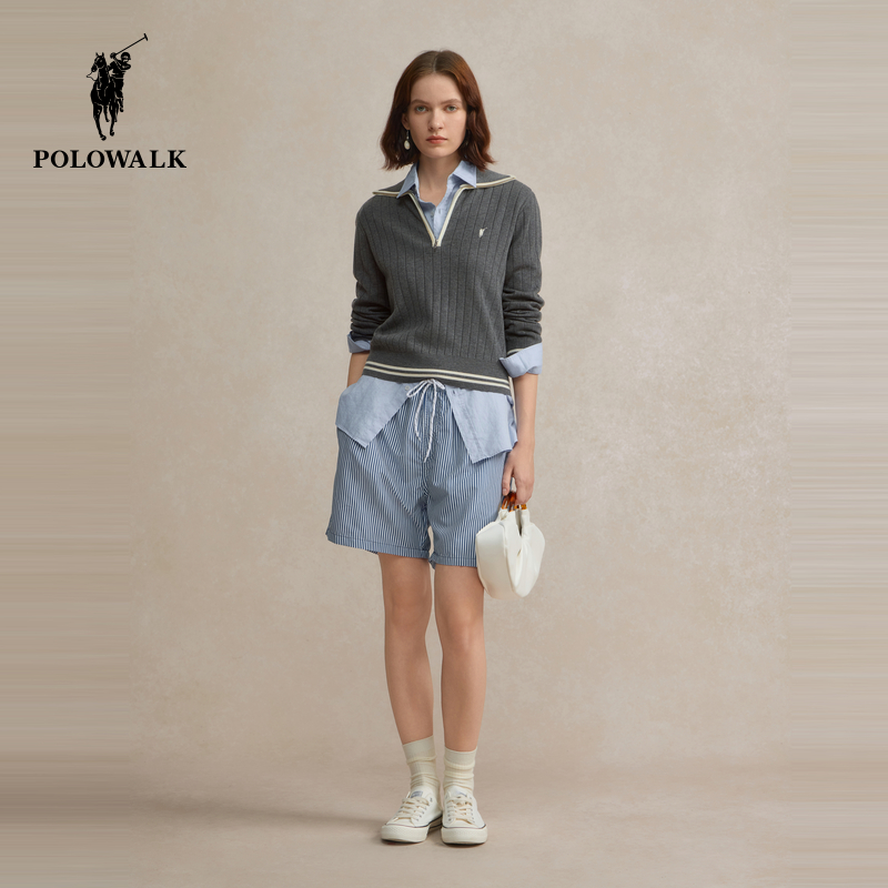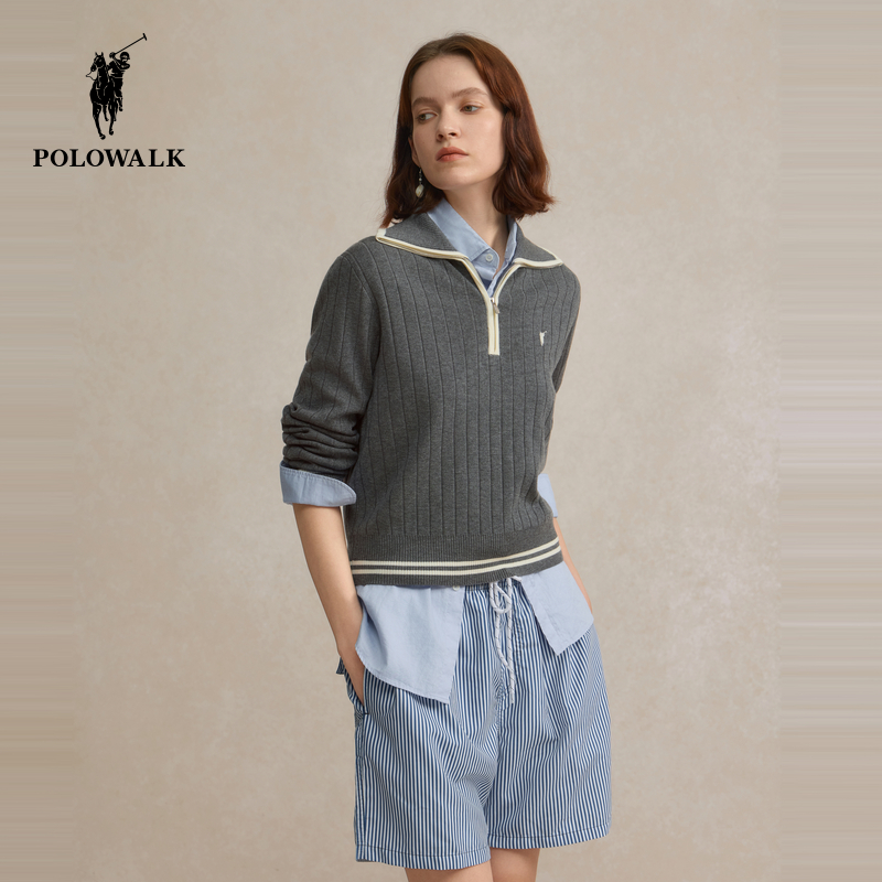 女式 新品 长袖 针织衫 POLOWALK女装 通勤polo领针织上衣女款 2025秋季
