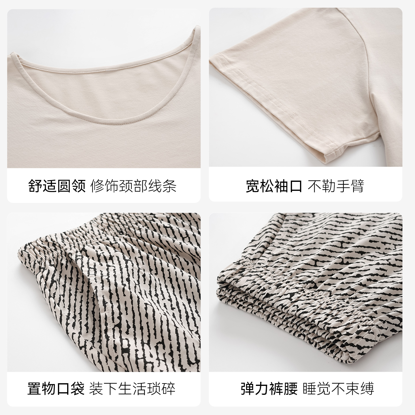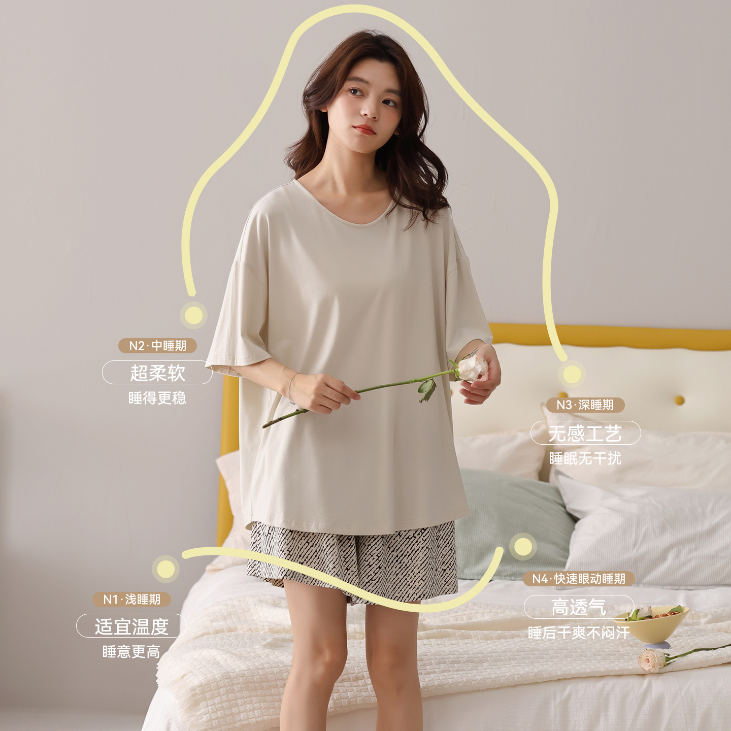 可外穿带胸垫家居服 纯色简约高级感棉绸套装 猫人纯棉睡衣女款 夏季