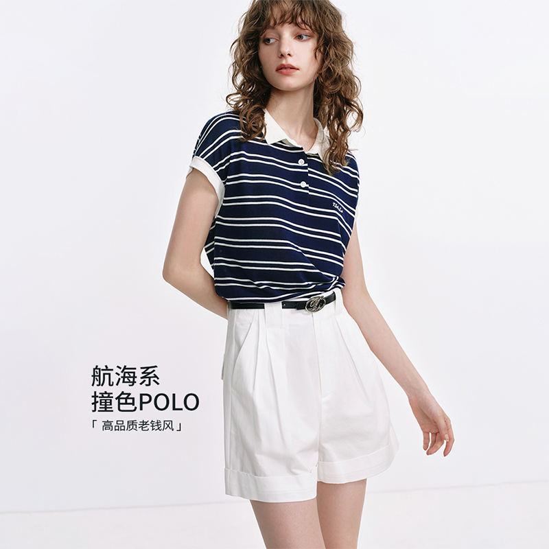 2025夏季 气质小衫 新款 打底衫 上衣女 短袖 KBNE蓝色莱赛尔条纹针织衫