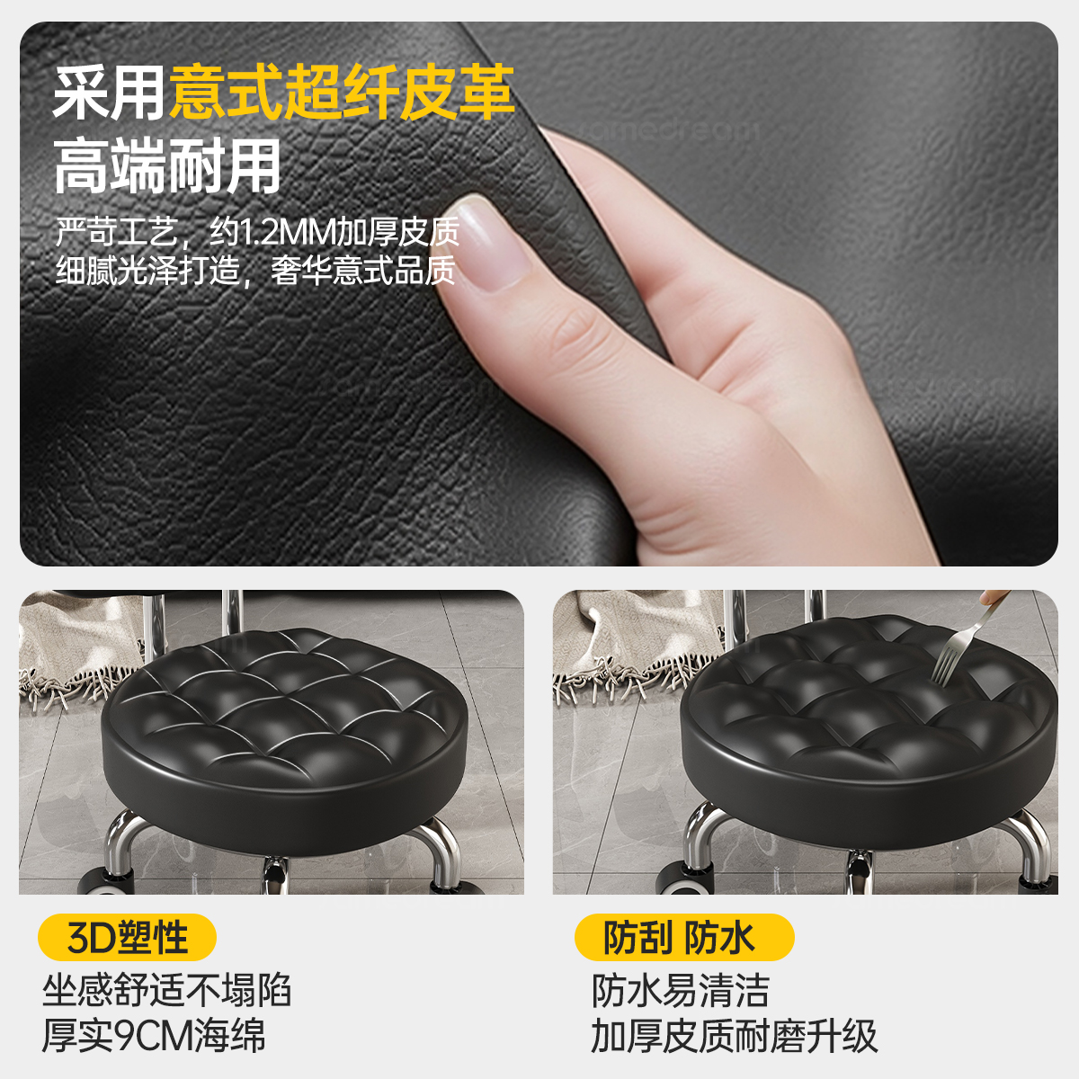 意式 万向轮小凳子滑轮移动凳子家用矮凳带娃客厅带轮靠背小椅子
