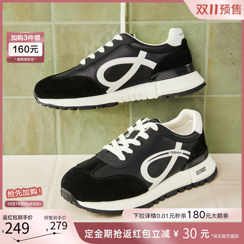 红色运动休闲阿甘鞋 德训鞋 百思图小彩糖25秋新款 女 张予曦同款