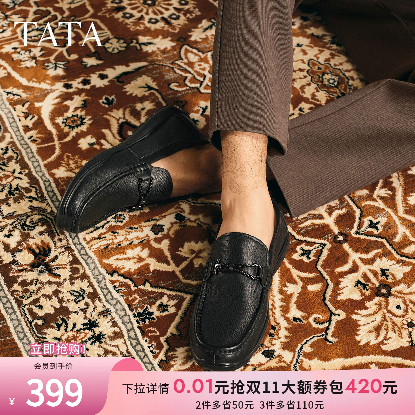 黑色增高鞋 TATA他她男鞋 简约一脚蹬休闲鞋 新款 子29437CM5 2025秋季