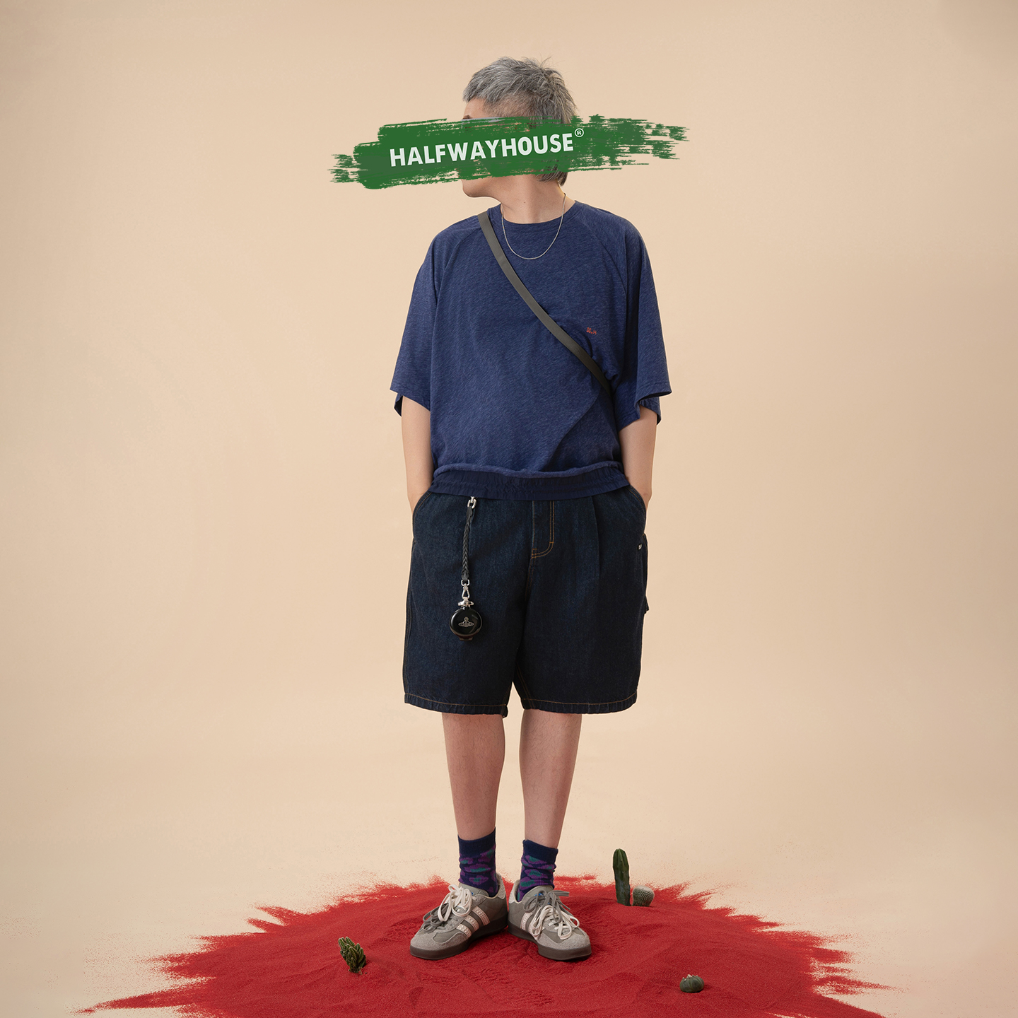 短袖 透气轻薄插肩袖 拼接抽绳宽松T恤 新款 HalfwayHouse2025年夏季
