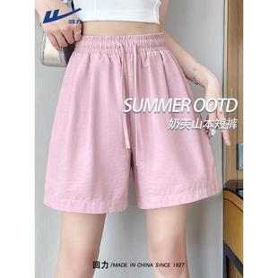 女2025新款 胖mm显瘦奶芙山本裤 夏季 大码 蓝色阔腿裤 回力运动短裤