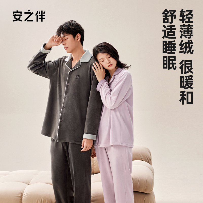休闲家居服套装 男女同款 可出门 女长袖 安比斯情侣睡衣舒适纯棉秋季