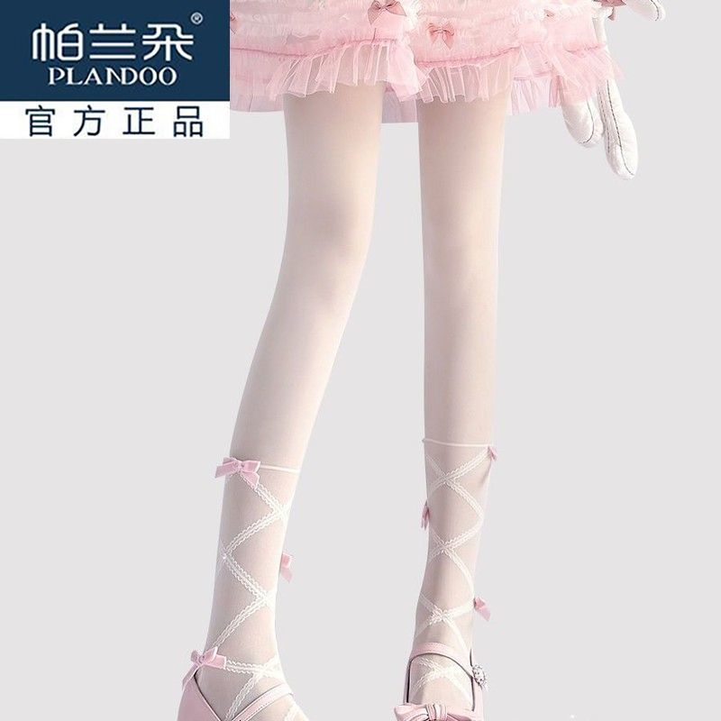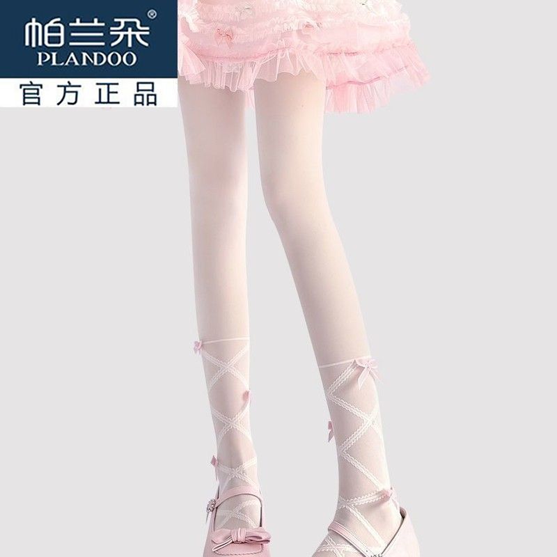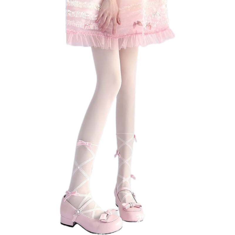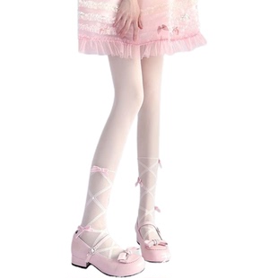 袜 防勾丝lolita纯欲珍珠黑丝连裤 洛丽塔蝴蝶结白色丝袜女夏季 薄款