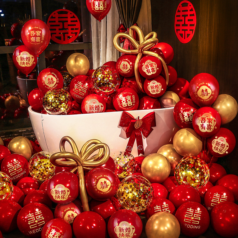 气球结婚布置1000个婚礼婚房装 红色订婚场景喜字婚庆用品全 饰套装