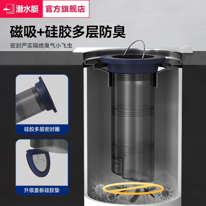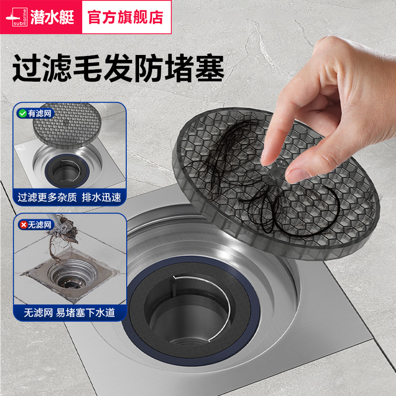 潜水艇深水封地漏防臭器卫生间下水道防臭内芯神器防虫不锈钢芯盖