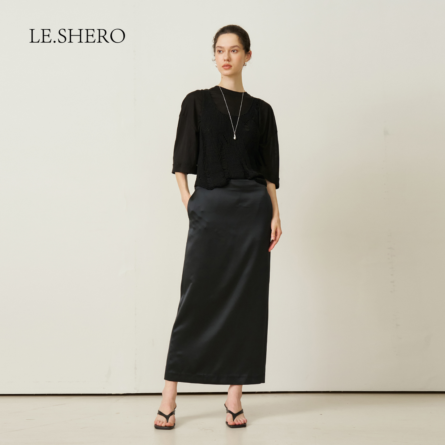 优雅气质醋酸长半身裙显瘦裙子 胶囊系列 LE.SHERO 吉娜同款