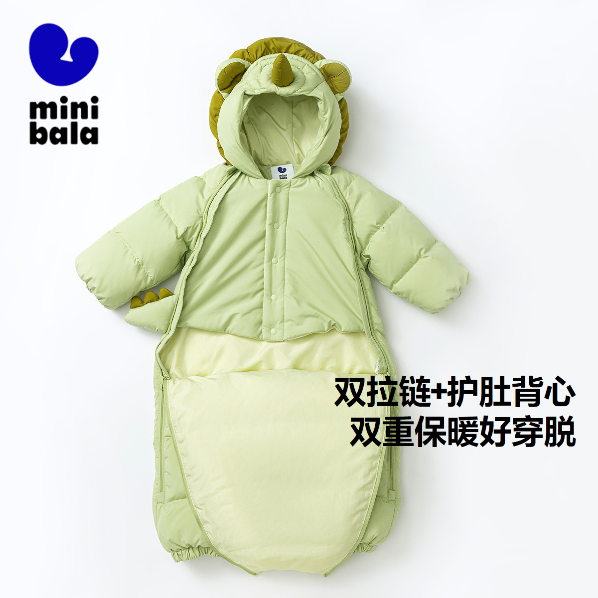 迷你巴拉巴拉婴儿羽绒连体衣宝宝三防衣服2025冬装 爬服哈衣厚 新款