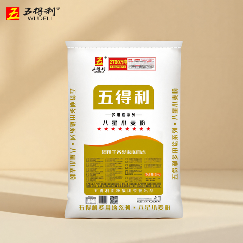 五得利面粉八星多用途25kg小麦粉中筋家用水饺包子馒头50斤白面粉
