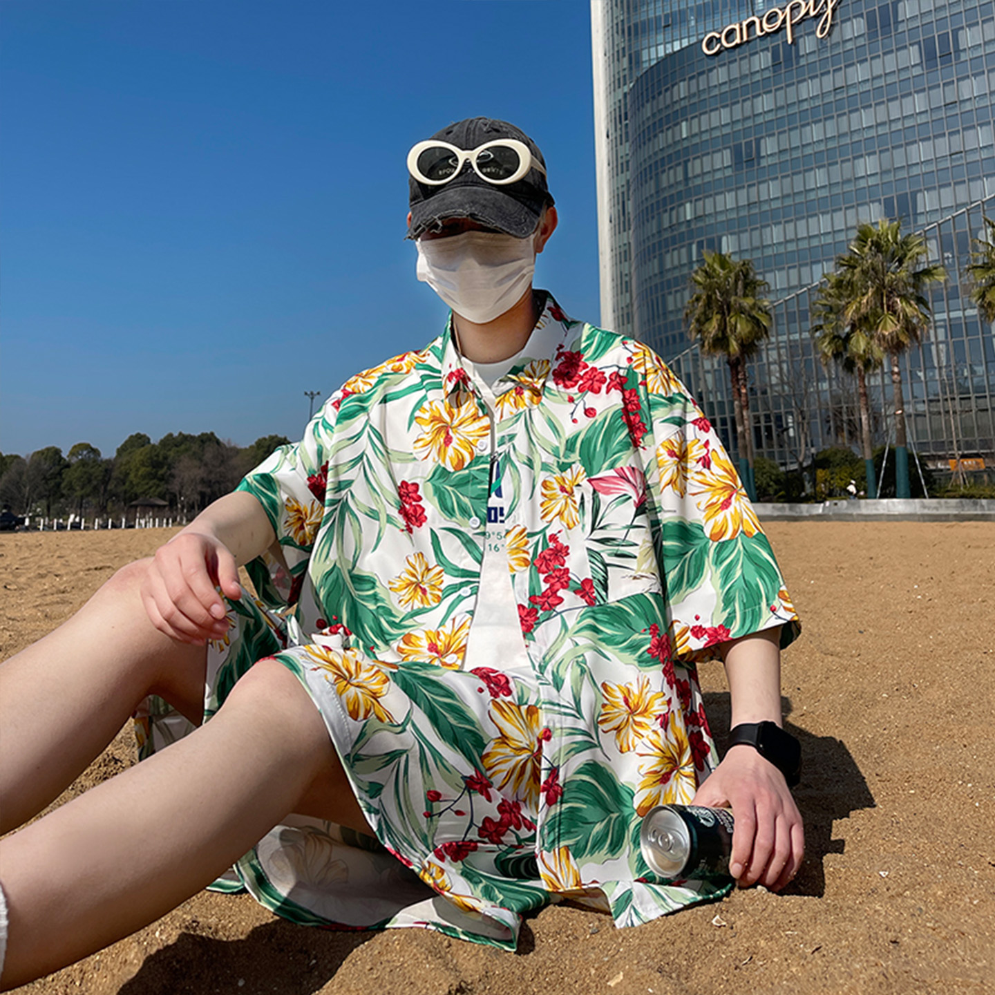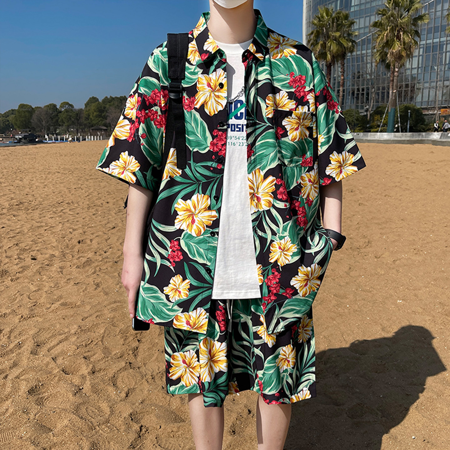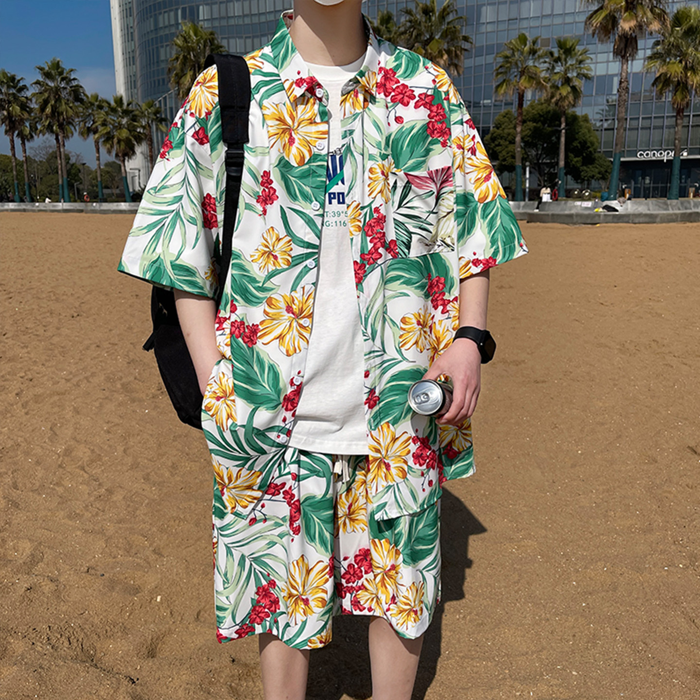 花短裤 夏威夷风海边度假沙滩裤 冰丝速干大码 三亚旅行穿搭套装 男士
