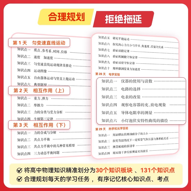 2026适用育甲高考夏梦迪30天速记高中物理知识高一二三核心考点知识点总结大全物理讲义高中物理专题训练教辅资料高考总复习必刷题