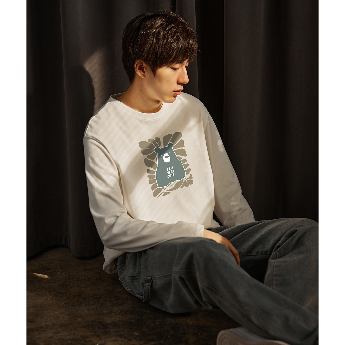 T恤男前胸图案宽松圆领上衣潮酷内搭打底衫 唐狮2025春秋新款 长袖