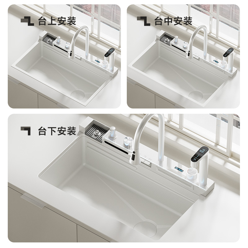白色鲸鱼瀑布水槽大单槽多功能RO反渗透即热净水器洗菜盆厨房家用