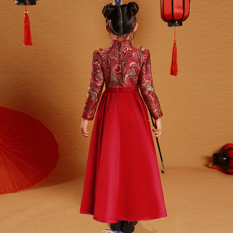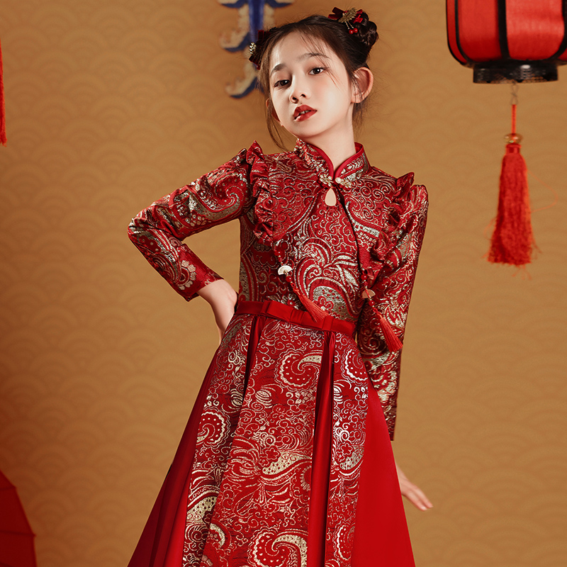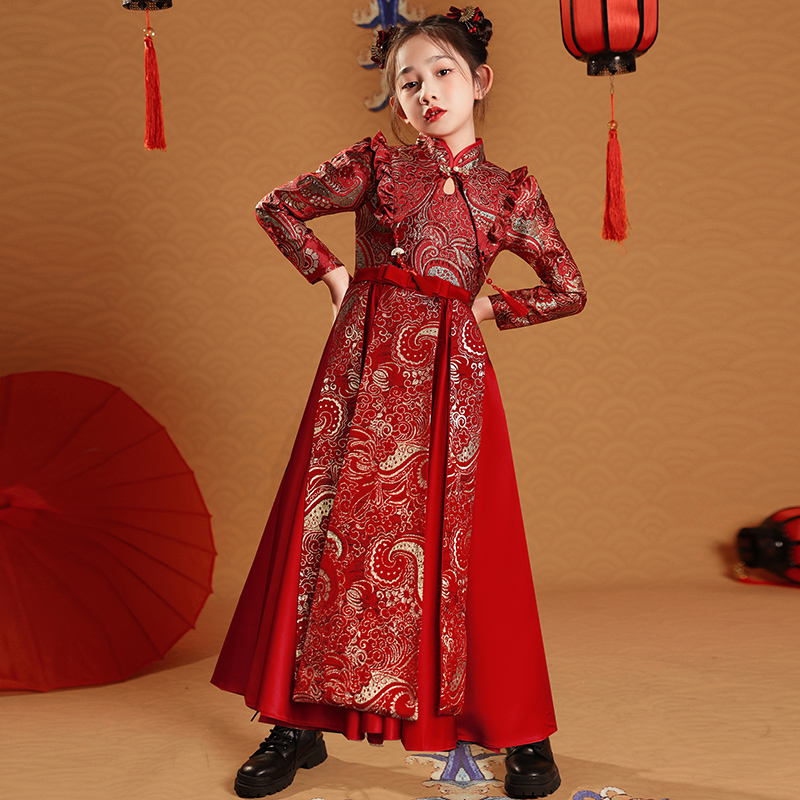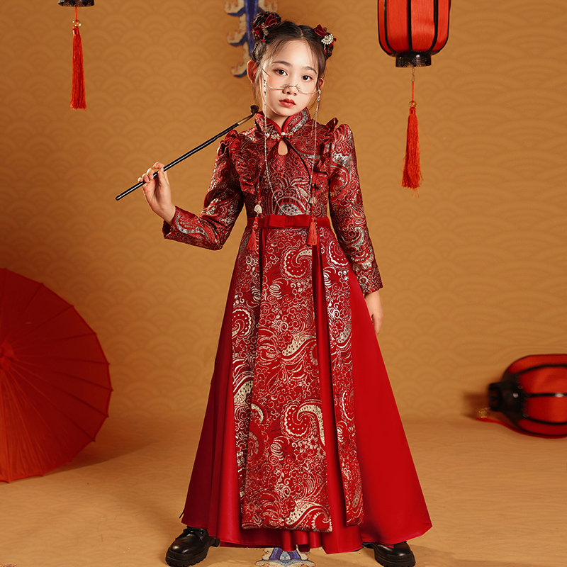 中国风宝宝拜年服冬季 女童汉服旗袍2025新款 秋冬红色儿童过年唐装