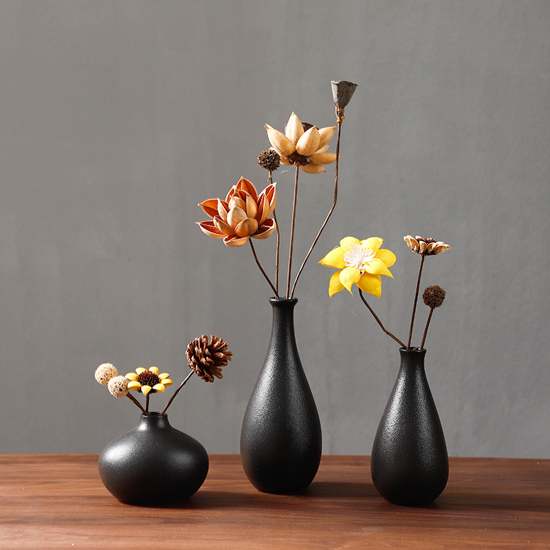 禅意复古黑色小花瓶摆件中式 饰品 客厅桌面陶瓷水培插花干花花束装