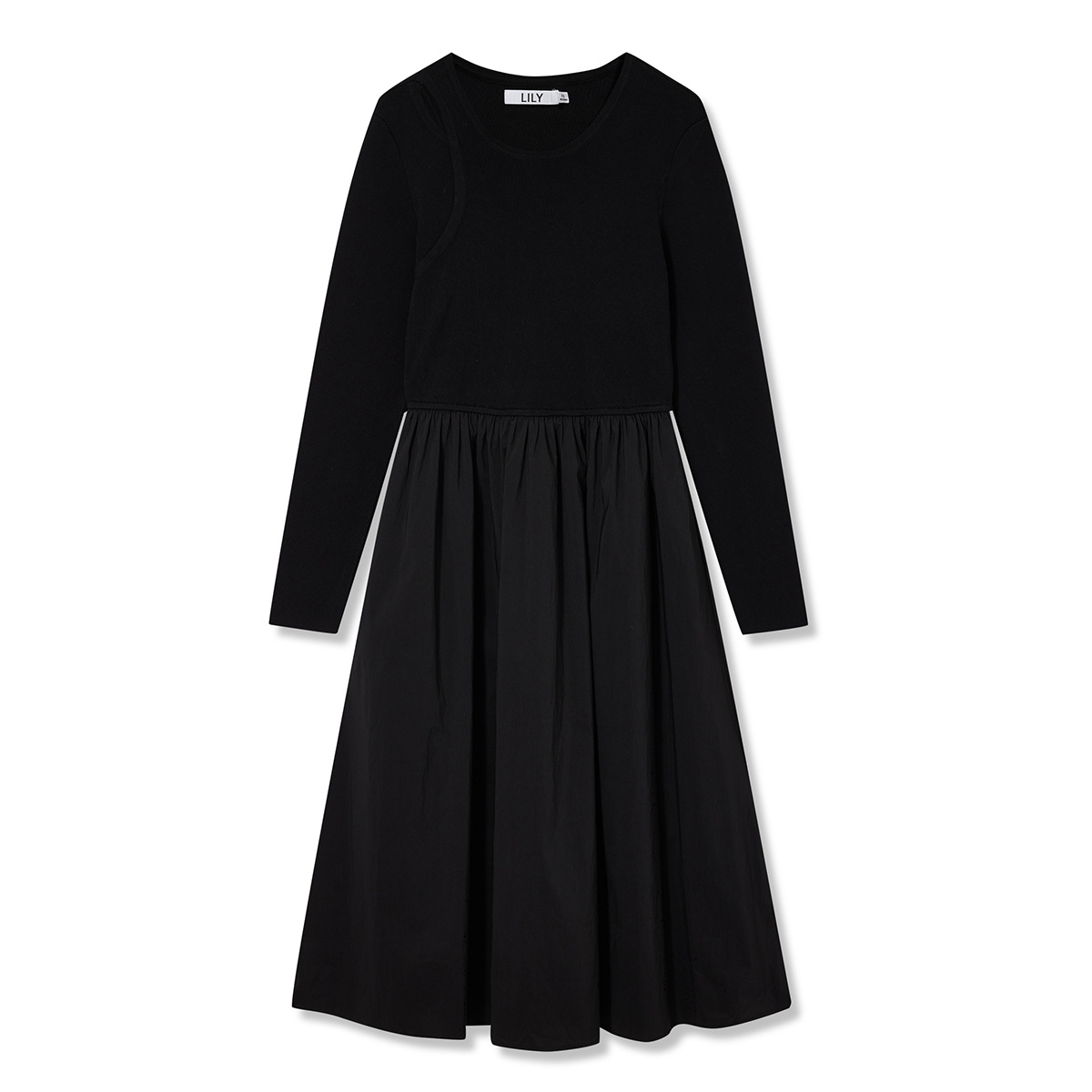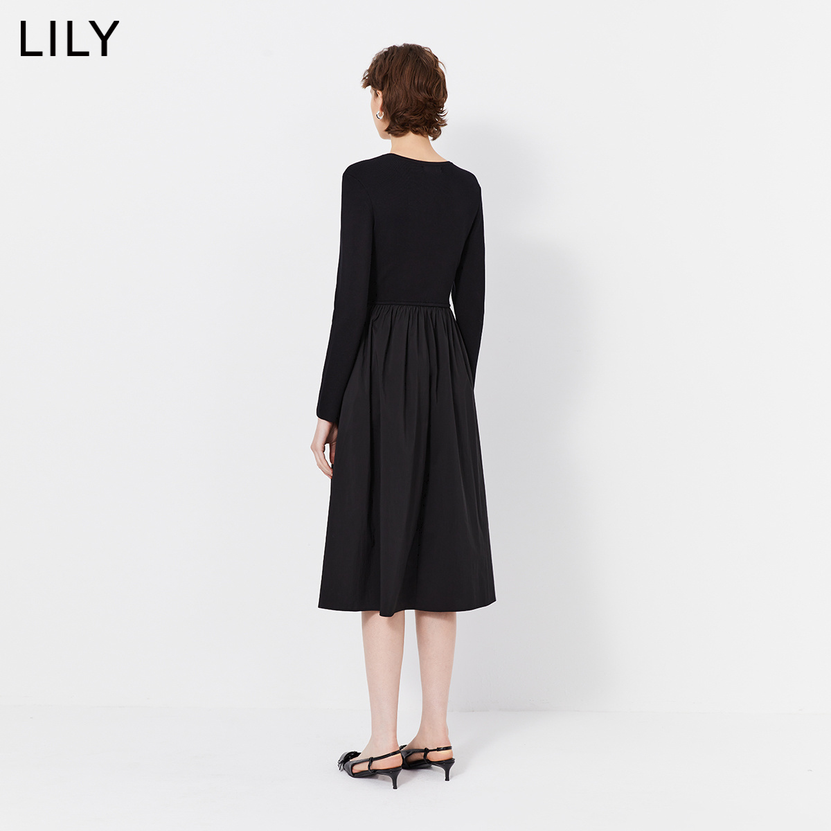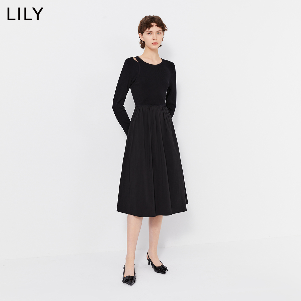 女装 LILY新款 含桑蚕丝设计感镂空连衣裙小黑裙 专柜甄选