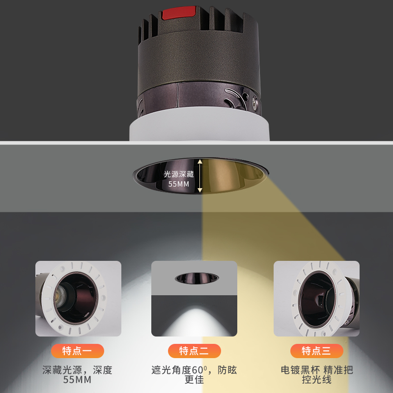 无边框射灯COB家用嵌入式 防眩光隐藏预埋客厅无主灯照明4000K筒灯