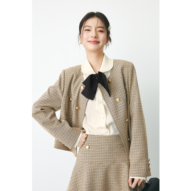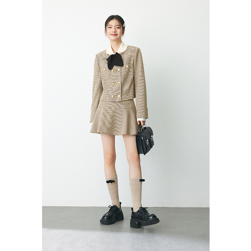 诗凡黎美拉德千鸟格小香风短外套半身裙短裙合集伊芙丽outlets店
