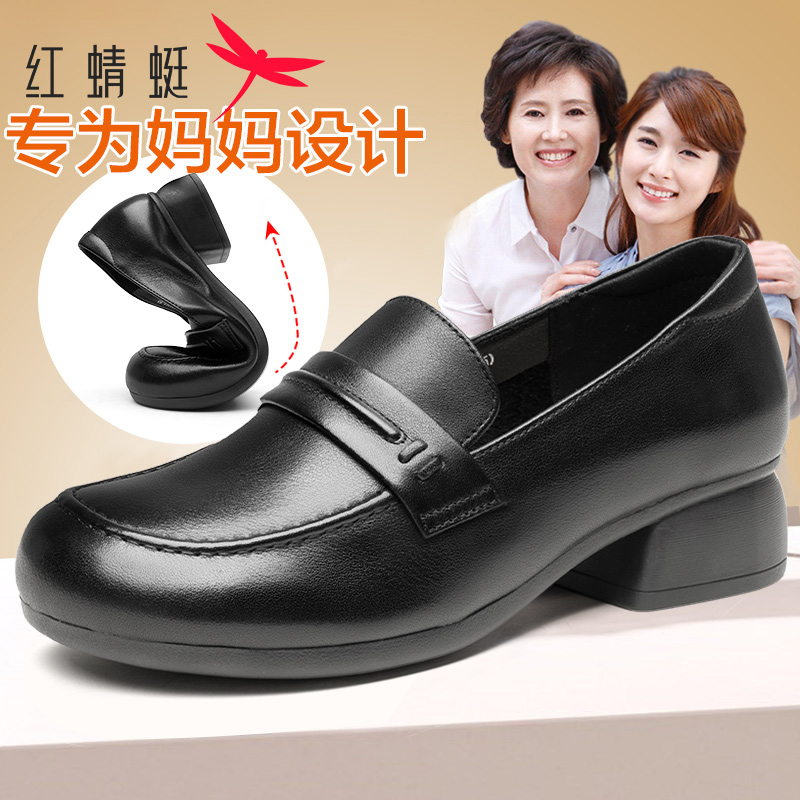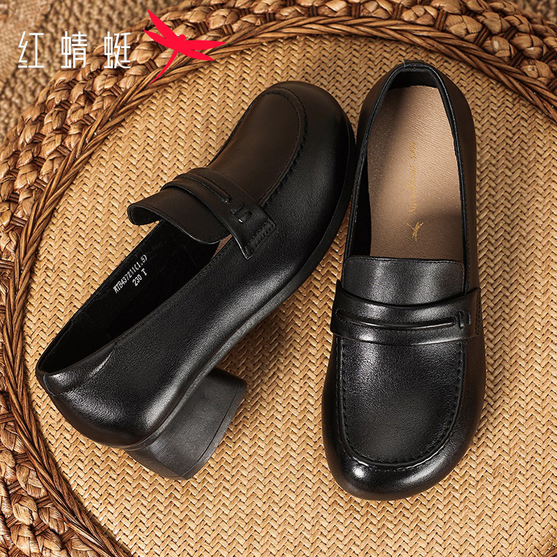 真皮圆头粗跟乐福鞋 红蜻蜓女鞋 休闲舒适百搭女士单鞋 新款 2025春季