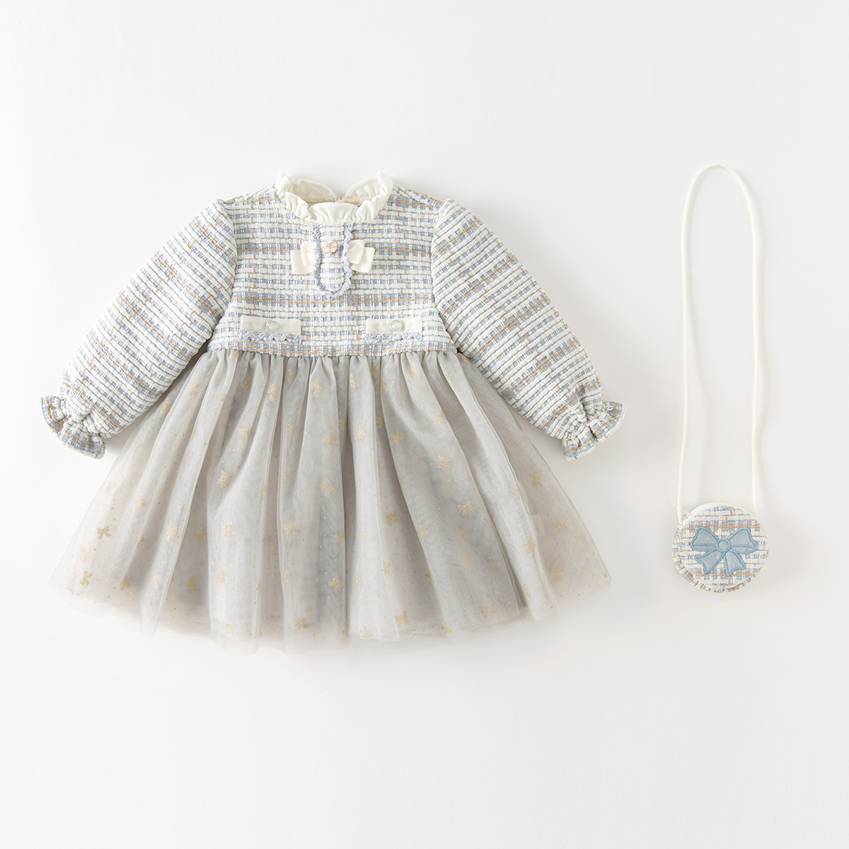戴维贝拉女童洋气连衣裙秋装 女宝宝小香风裙子儿童公主裙