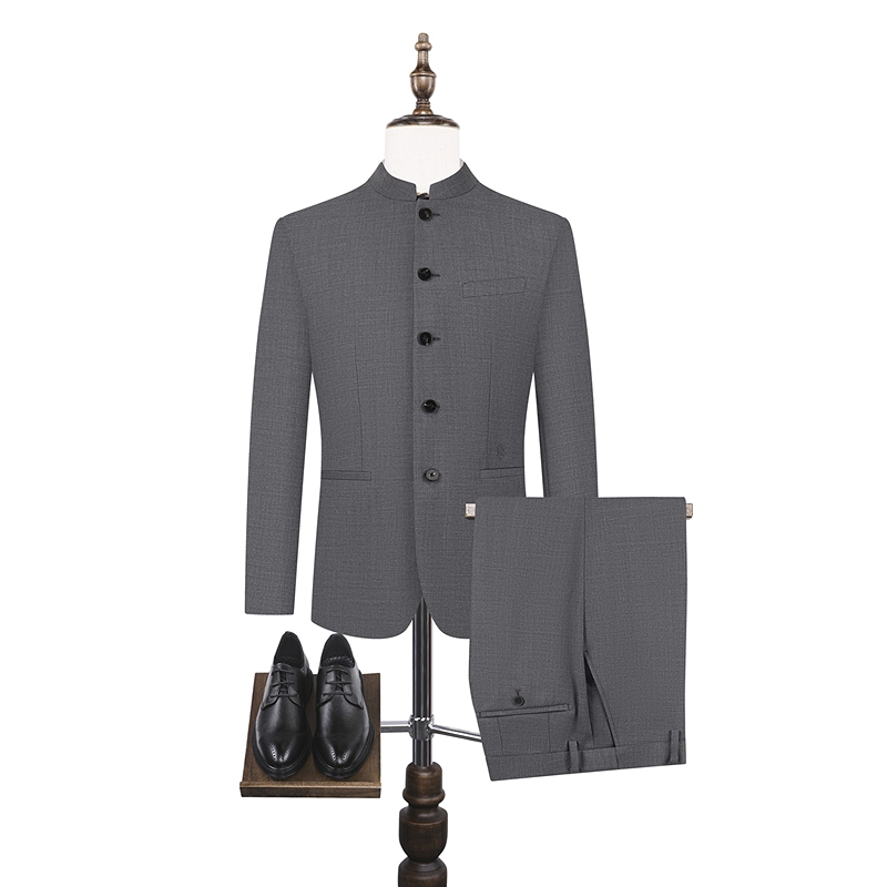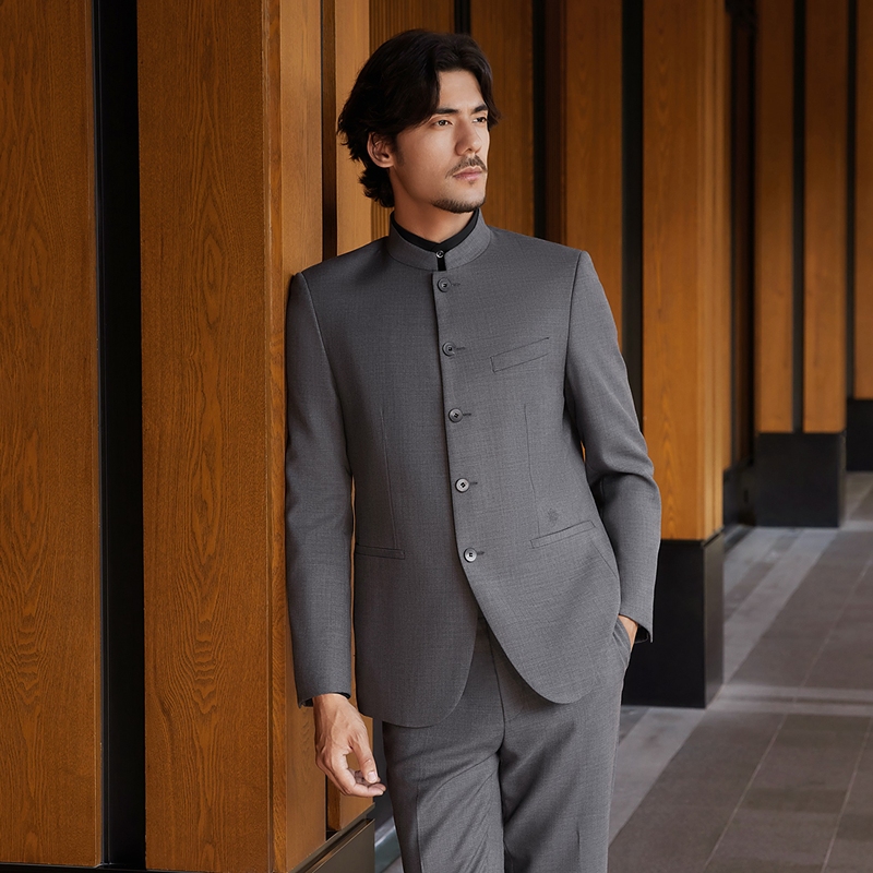 男秋冬国风商务正装 套装 柒牌立领西装 单排中山装 中华立领