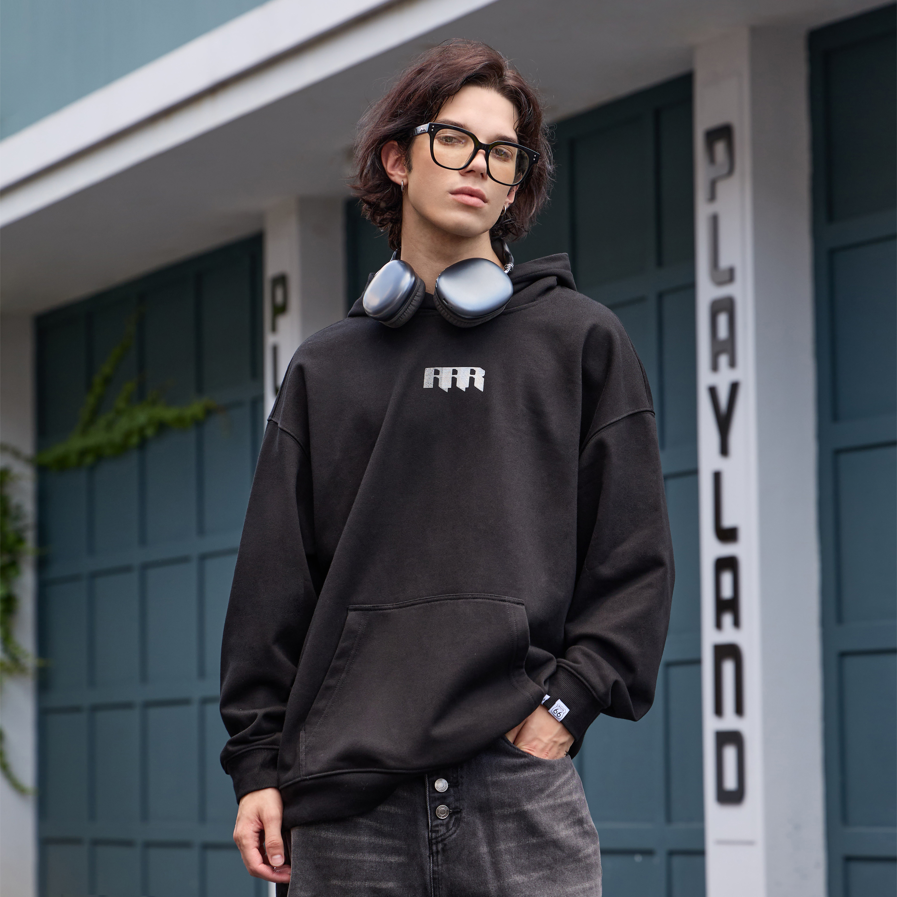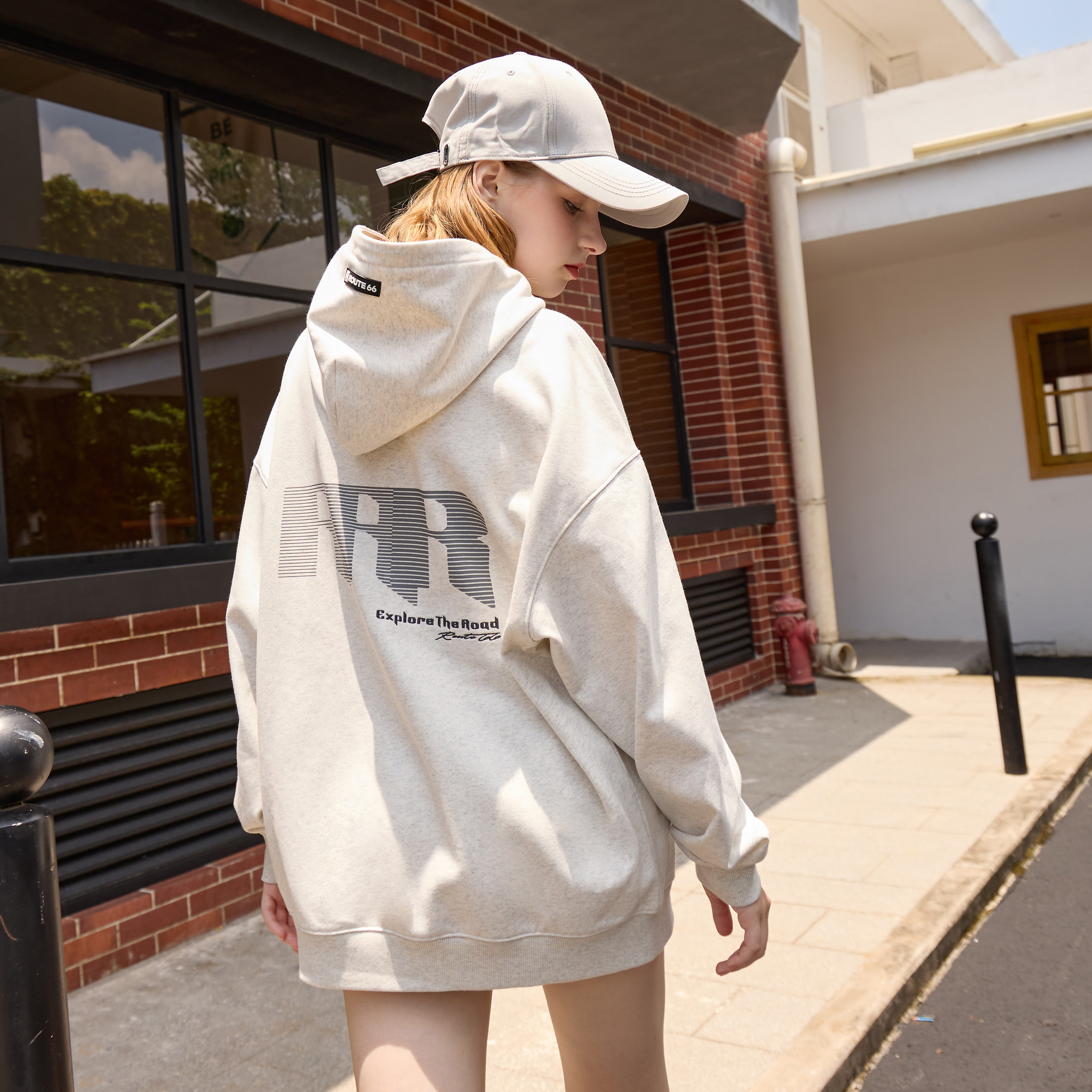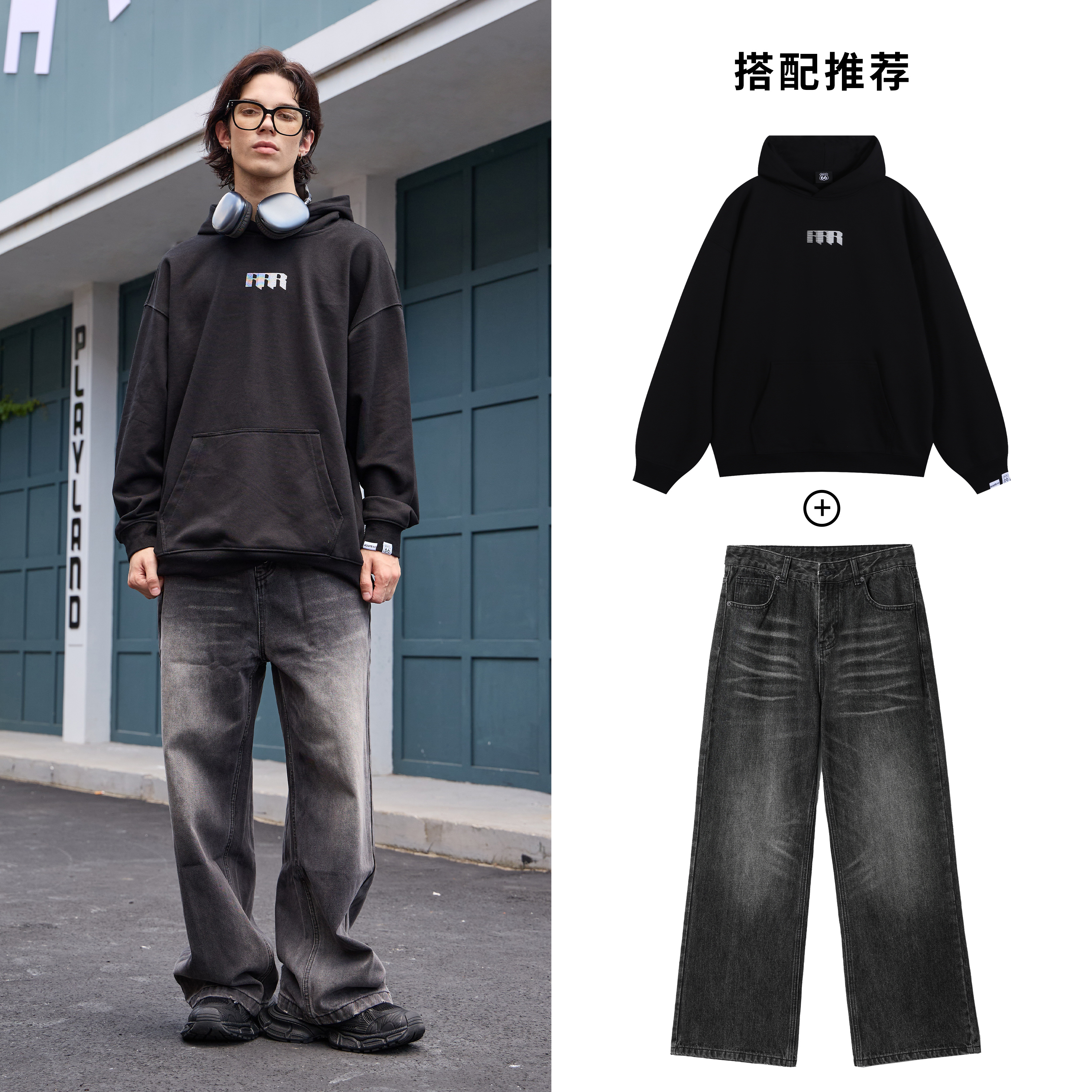 上衣宽松字母印花 做旧复古学院风长袖 森马连帽卫衣男2025秋季 新款